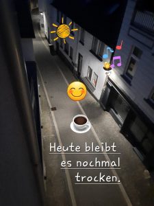 In unserer Gasse ist es ruhig, die Amseln singen ihr Frühlingslied und es wird schon früh hell draußen. Jetzt erstmal