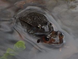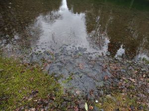 was für einen Schreck bekam ich da, der war ja fast schon wieder leer und das nach nur ein paar trockenen Tagen. Die Frosche laichten kräftig drauf los,