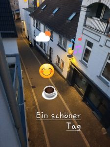schon schön hell, aber bitte nicht dran gewöhnen, die Uhrumstellung kommt noch. Aber ein klein bischen Freude verbreitet es nach dem dunklen Winter schon. In unserer Gasse ist es