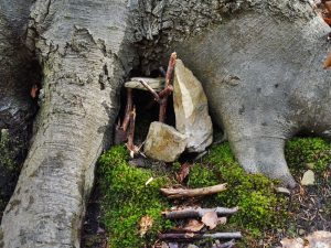 habe ich heute auch dem Jäger und dem kleinen Mutigen sein Haus fertig gemacht, grob fertig. Da muss jetzt noch Moos im Innern ausgestochen werden u.s.w.