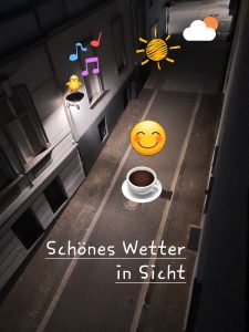 In unserer Gasse ist es noch trocken und dunkel, die Amseln singen ihr Frühlingslied. Fühlt sich alles irgendwie nach Wochenende an. Jetzt erstmal