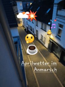 einen leckeren Aufwachkaffee und dann schauen wir mal weiter. Was ich heute so mache? Denke mal, dass wird wieder eine ganz spontane Geschichte, ich schaue einfach, was geht und dann lege ich los. Wir haben immer noch April und der kann genauso spontan sein, wie ich. Und im Büro ist noch etwas zu machen, das wäre für heute Nachmittag noch was, schauen wir mal.