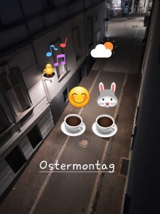 Guten Morgen und frohe Ostern euch allen. In unserer Gasse ist es noch ruhig, die Luft ist